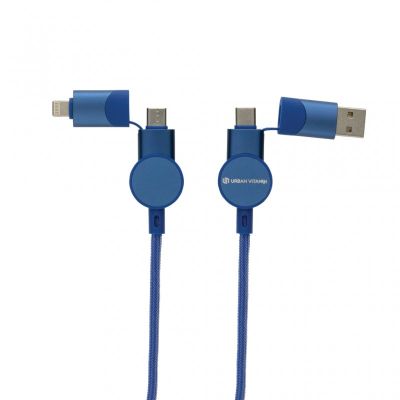 The 120 cm cable has 5 different connectors: USB C in, USB A in, type C out, IOS out and micro USB out.