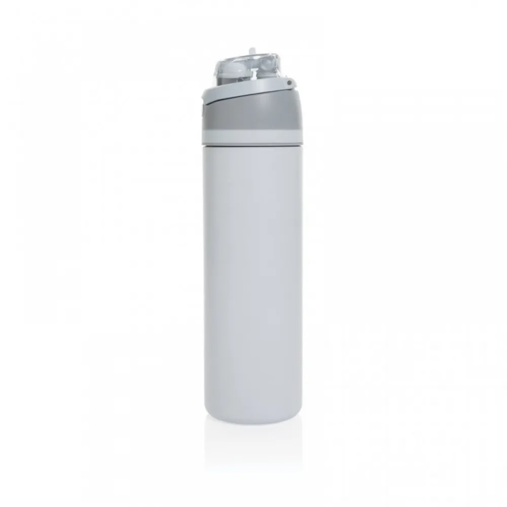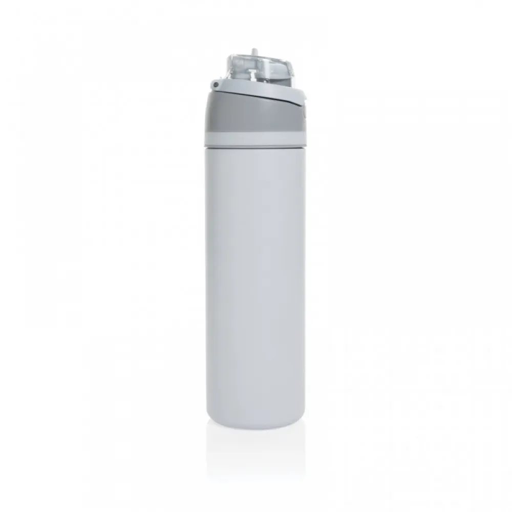 This innovative bottle lets you choose how you drink. Sip through the built-in straw while holding it upright, or tilt it back to enjoy a sip from the wide-mouth opening. Ready for action at a moment's notice, just push the button to flip the top open, and push it back down to securely lock it shut, keeping out dirt and germs. 720ml content and made from RCS certified recycled steel.