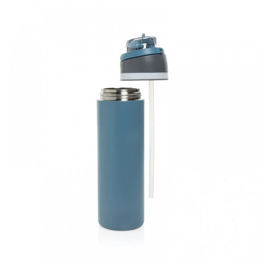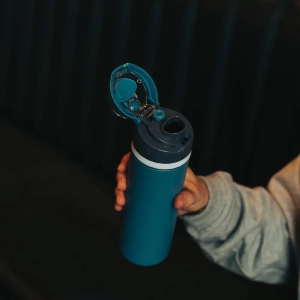 This innovative bottle lets you choose how you drink. Sip through the built-in straw while holding it upright, or tilt it back to enjoy a sip from the wide-mouth opening. Ready for action at a moment's notice, just push the button to flip the top open, and push it back down to securely lock it shut, keeping out dirt and germs. 720ml content and made from RCS certified recycled steel.
