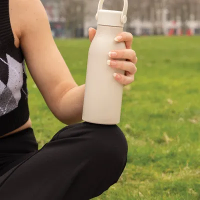 The pluto RCS certified recycled aluminium 680ml water bottle features single-wall construction with a screw-on leak-resistant lid.