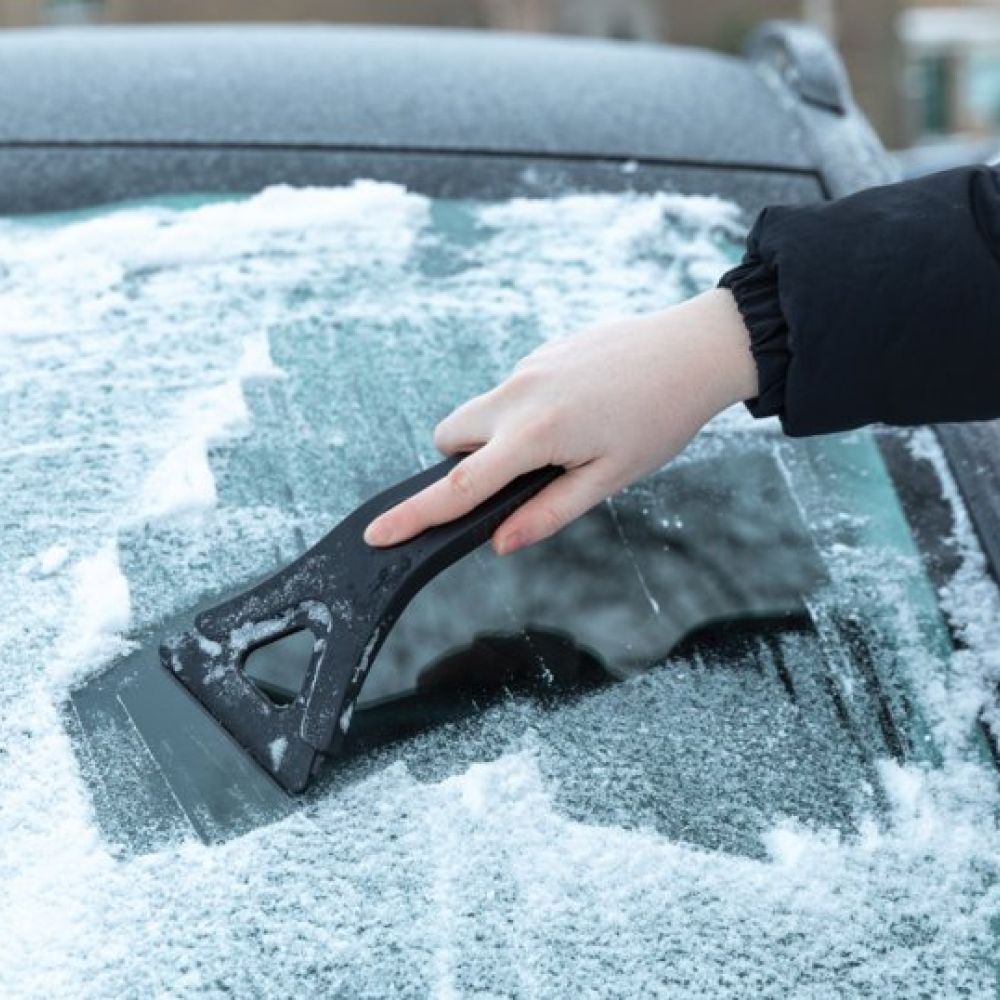 3-in-1 ice scraper made with RCS (Recycled Claim Standard) certified recycled ABS/HIPS/TPU.