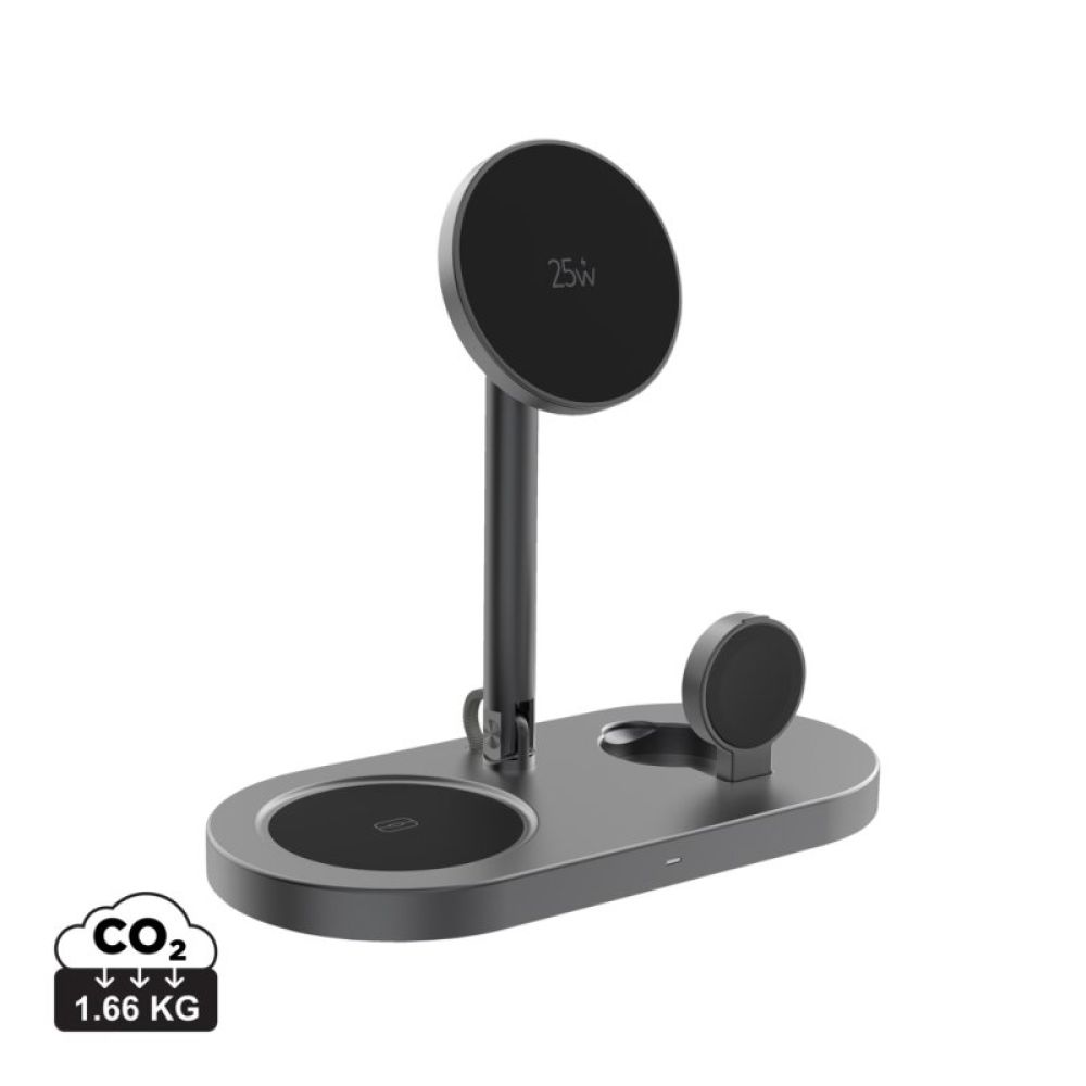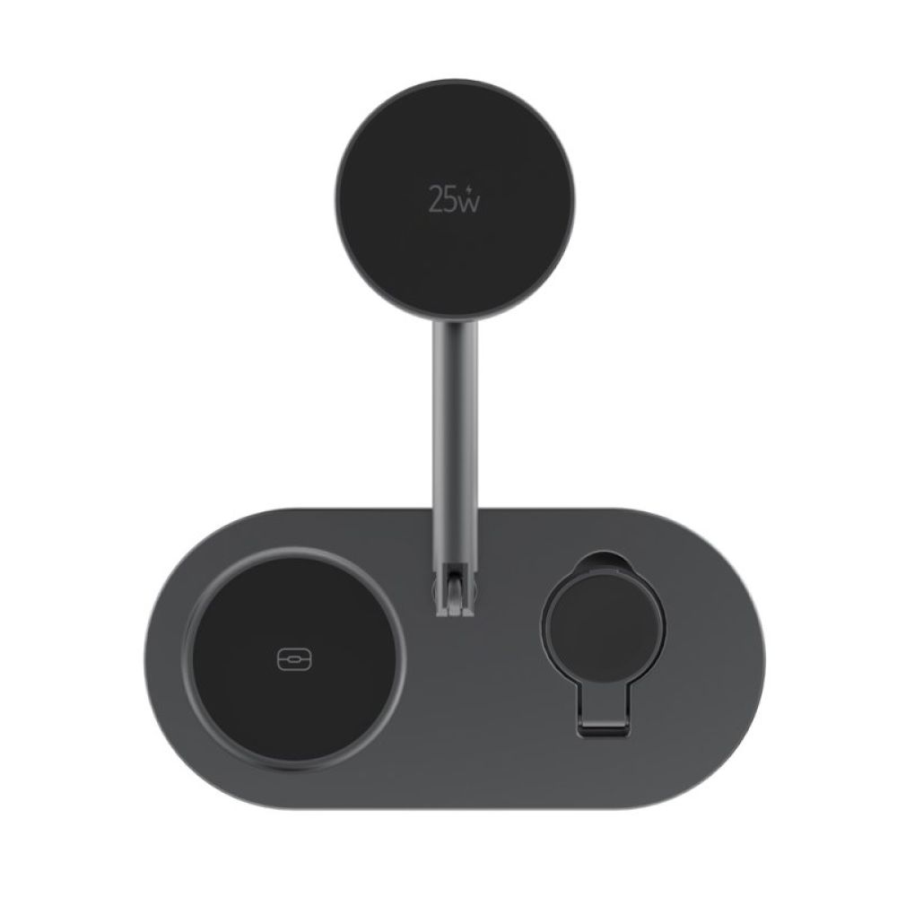 Experience ultra-fast 25W magnetic wireless charging with Quantum Ultra-Fast 3-in-1, the sleek desktop charger that powers your phone, Apple Watch/Samsung Watch, and earbuds simultaneously. Its efficient system delivers stable charging across all devices, supported by advanced safety and temperature protection for reliable everyday use.