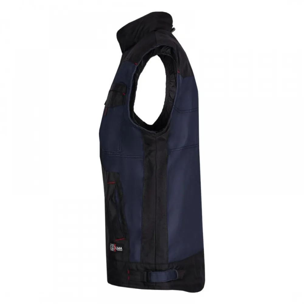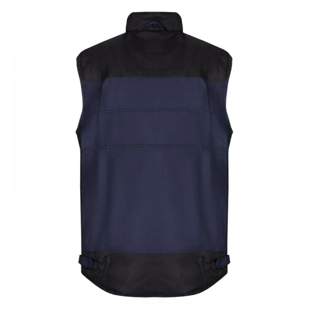 Radni prsluk, 300 g/m2, platno prepletaj, visoka kragna, ojačanja od 900D poliestera na mestima izloženim većem habanju, dva džepa na grudima uključujući odeljak za identifikacionu karticu, dva prednja džepa, jedan unutrašnji džep, čičak trake na dnu za podešavanje širine u struku, skriveni unutrašnji rajsferšlus na leđima za lakši pristup prilikom štampanja