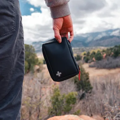 Luxury first aid kit, featuring a water-repellent nubuck-PU material that is both stylish and practical.