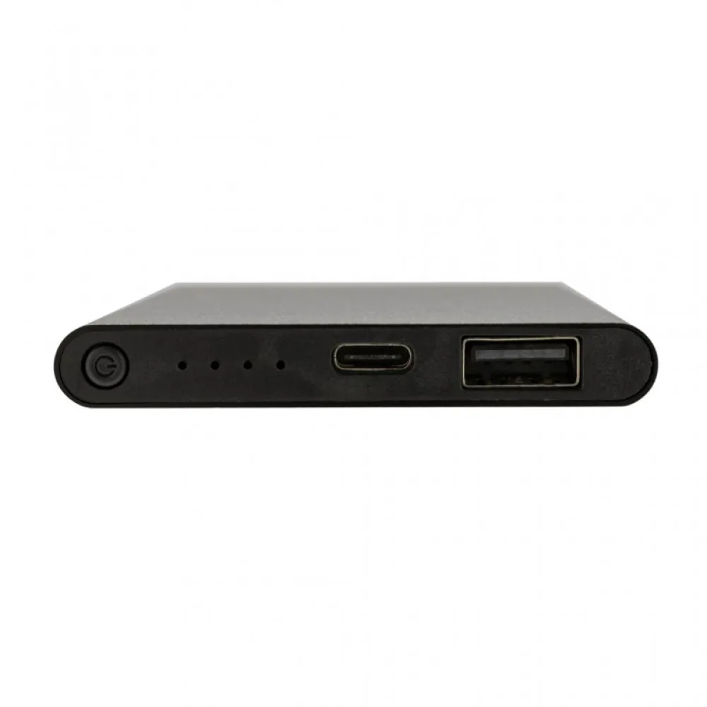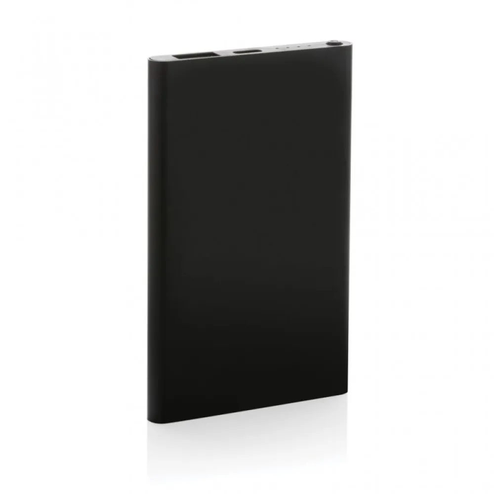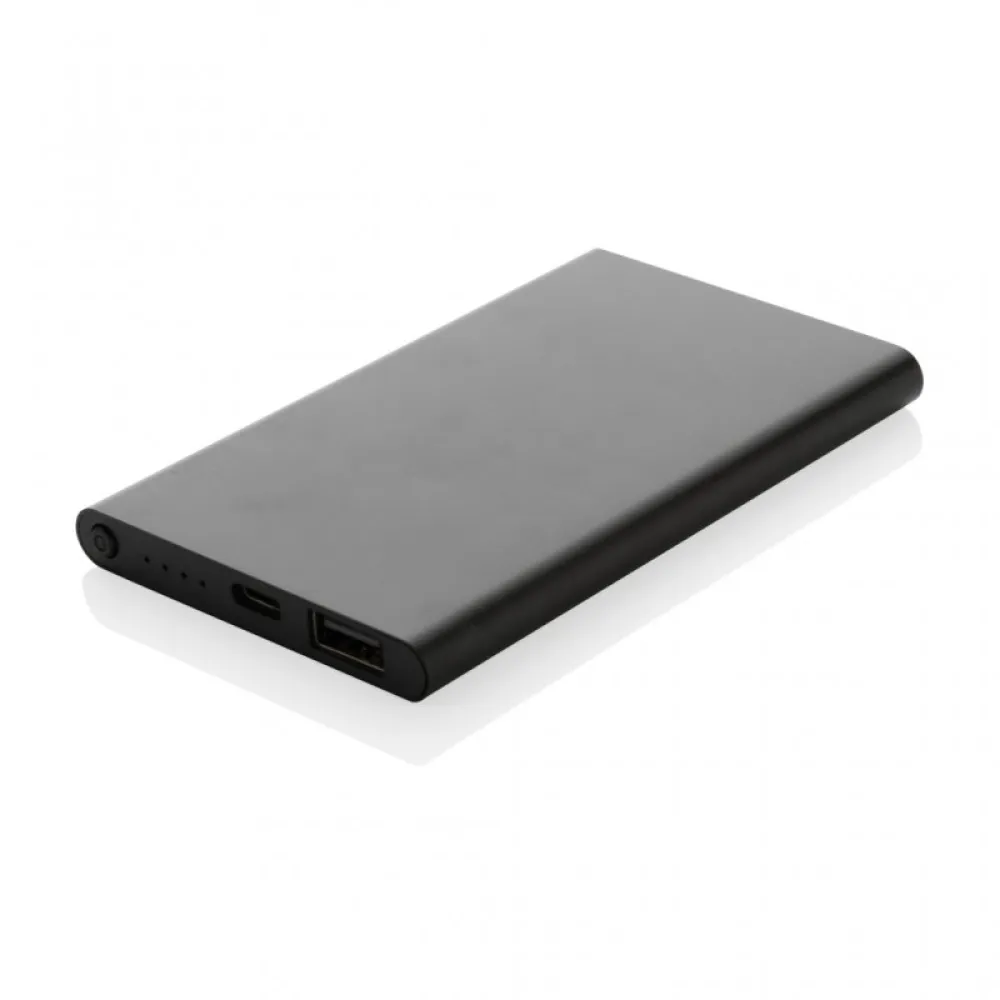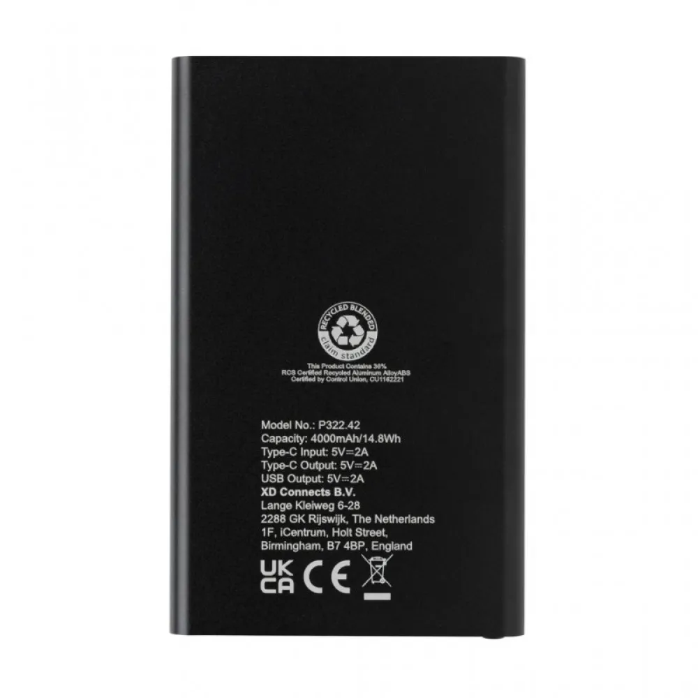 4.000 mAh flat design powerbank with the case made out of RCS certified recycled Aluminum/ABS plastic. RCS (Recycled Claim Standard) is a standard to verify the recycled content of a product throughout the whole supply chain.