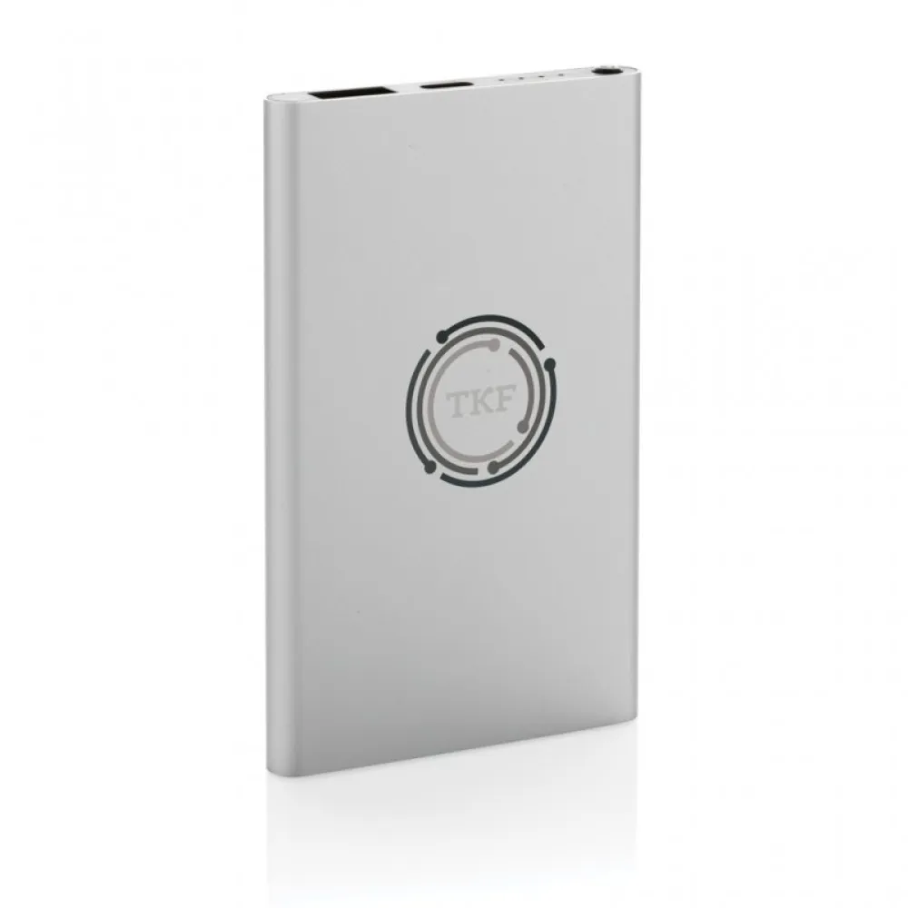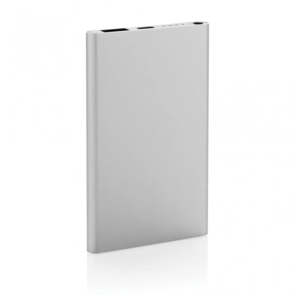4.000 mAh flat design powerbank with the case made out of RCS certified recycled Aluminum/ABS plastic. RCS (Recycled Claim Standard) is a standard to verify the recycled content of a product throughout the whole supply chain.