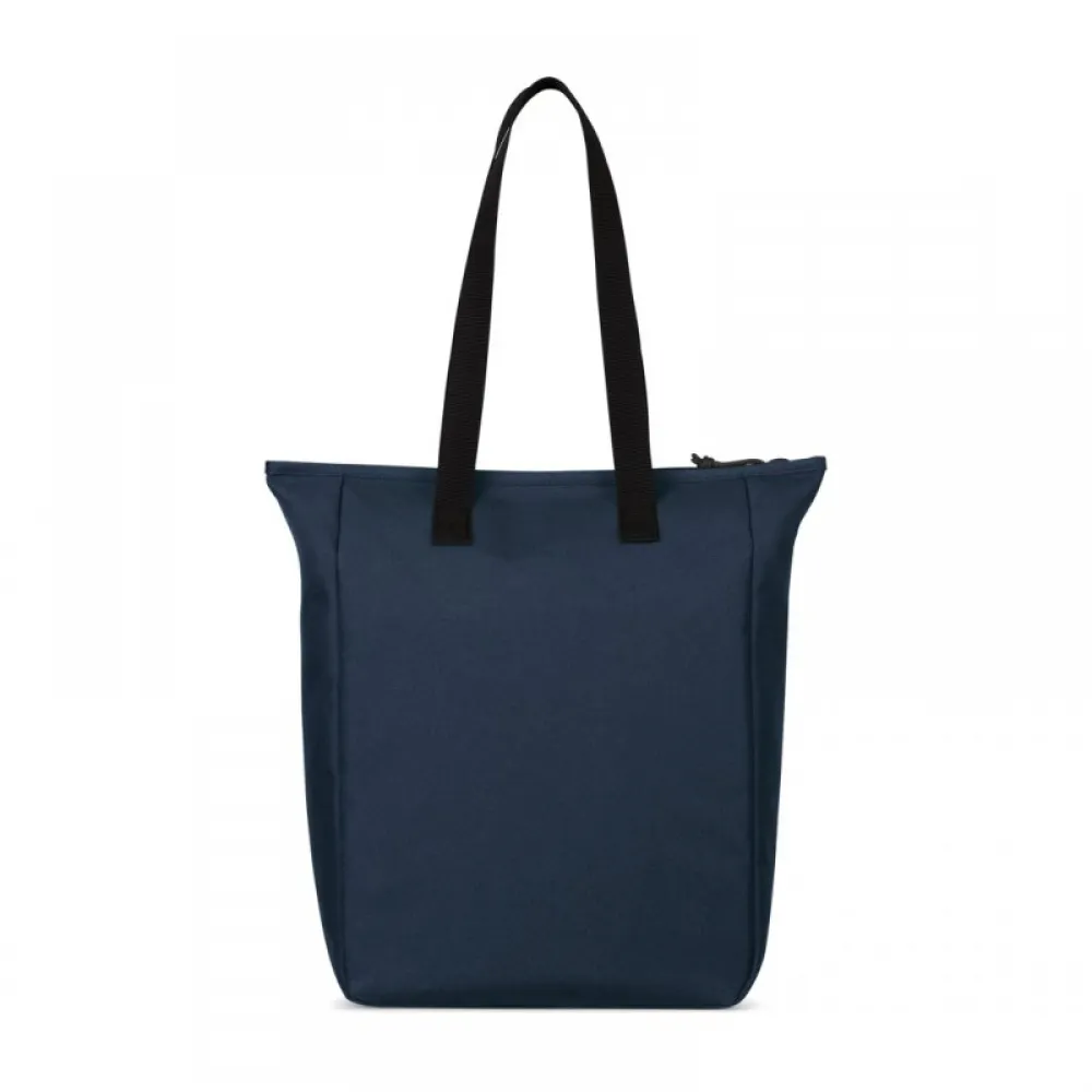 A modern and sustainable update to a classic tote bag using recycled fabric and webbing made from plastic bottles. Front slash pocket for storing accessories. Zippered opening to large main compartment. Interior zippered pockets for additional storage.Includes AWARE™ Virtual ID &