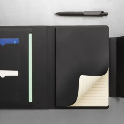 PU with magnetic closure and magnetic phone holder that is compatible with magsafe iPhones 12 or higher, inside A5 notebook with lines, innerp ages are FSC® certified and 64 sheets/128 pages; cream paper colour with lines; paper weight 80gsm, documents pocket and 2 business card slots. Notebook is refillable.