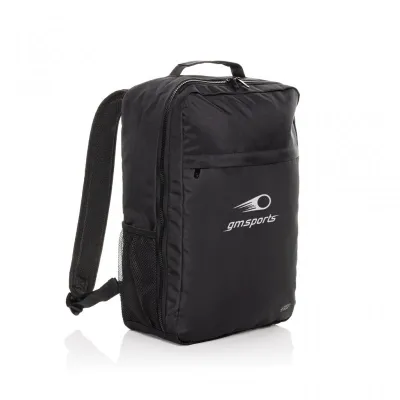 Made from 100% rPET, this sleek and durable backpack features a main zipper compartment with a dedicated laptop section that fits modern 15.6-inch laptops, along with a mesh zipper pocket and care label inside.