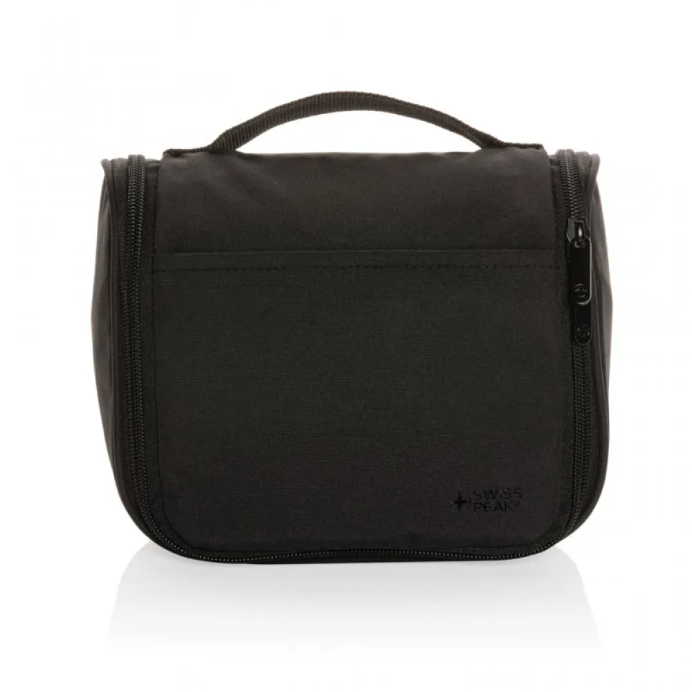 Stay organized while traveling with the Lohan AWARE™ recycled polyester toiletry bag. It features one main compartment, 4 subcompartments, 2 open mesh pockets, and 1 mesh zipper pocket inside.