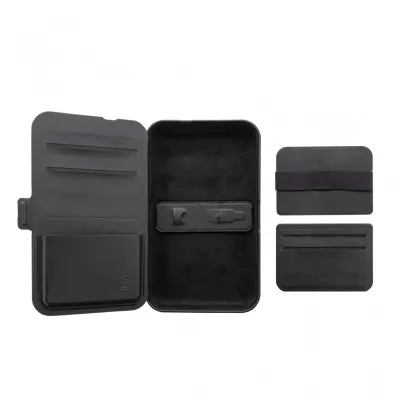 The travel case has storage space for passport, multiple cards and has an integrated cable holder.