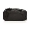 Lightweight 1680D and 600D polyester 2-in-1 bag. Works as both a backpack & duffle. Includes a roomy main compartment with a U-shaped top zipper closure, a side entry shoe or dirty clothes compartment and a side zippered pocket.