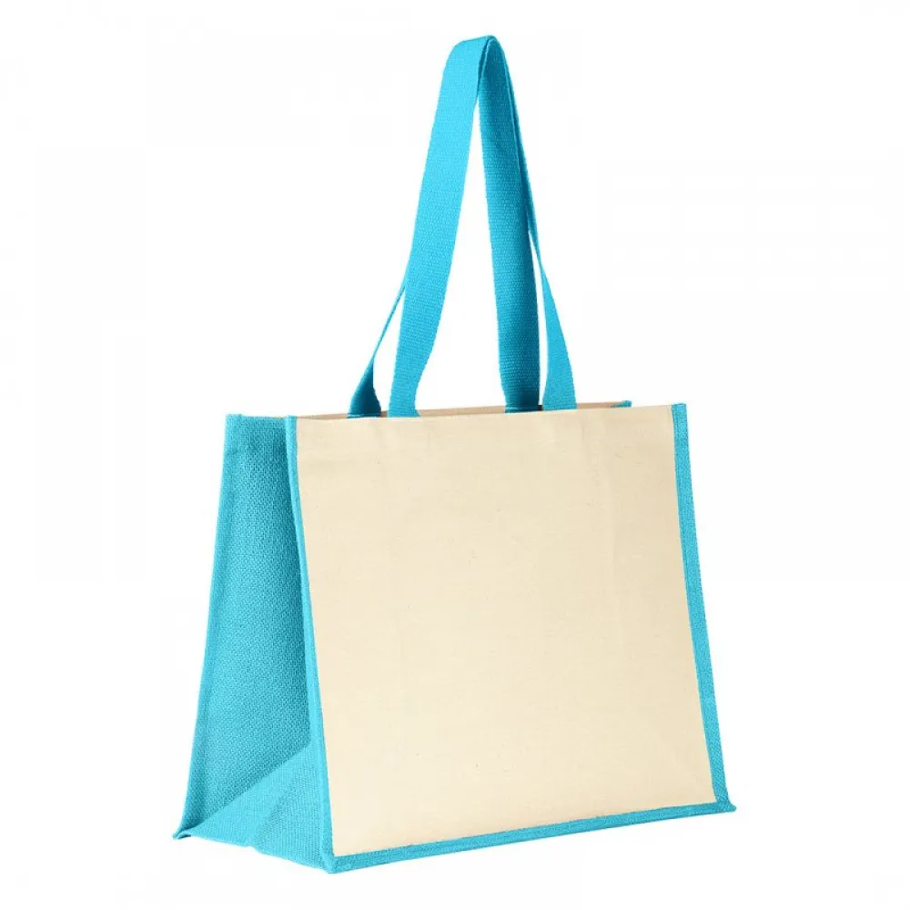 Materijal: bočne strane i dno - juta, prednja, zadnja strana i ručke - pamuk
