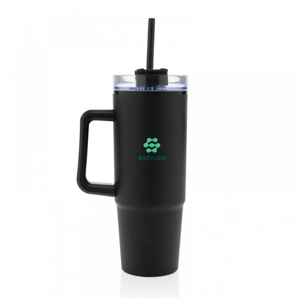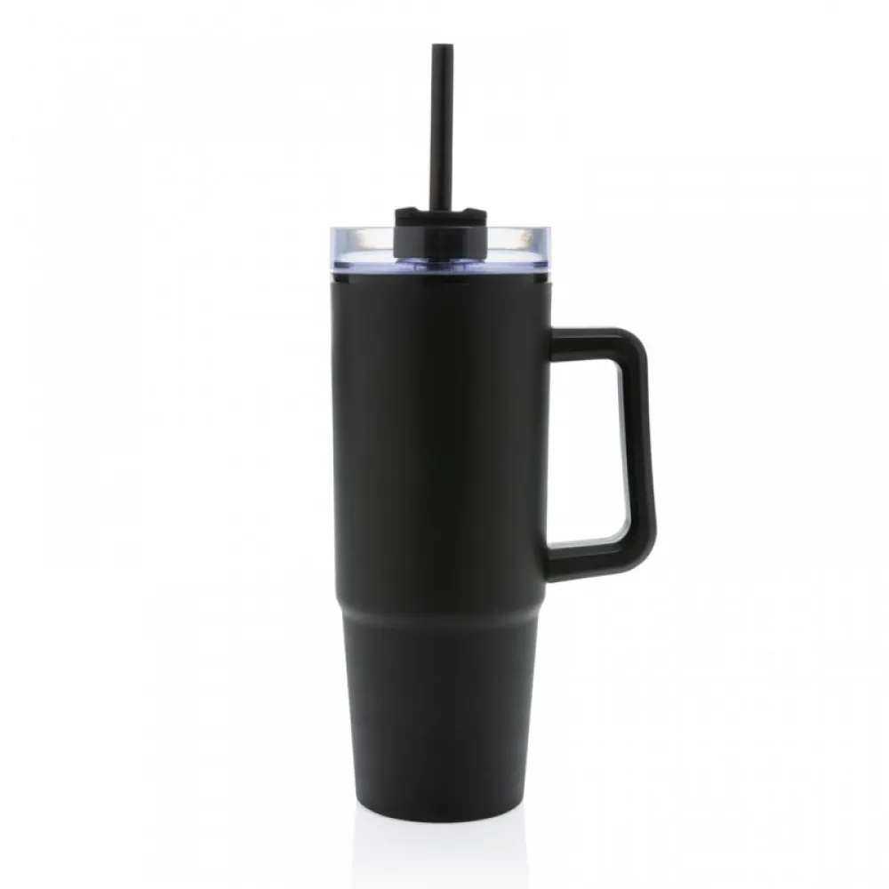 The ergonomic handle with comfort-grip inserts ensures easy carrying and the slim base fits most car cup holders. Hand wash only.