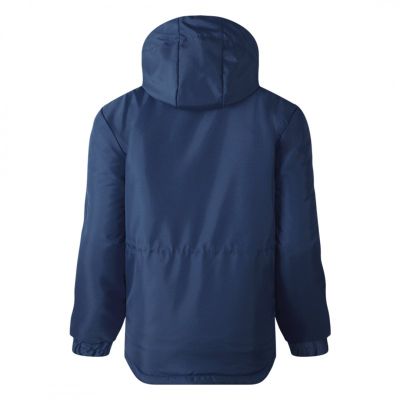 Radna jakna, visoka kragna, kapuljača u kragni, elastične ranfle oko rukava sa čičak trakom za podešavanje širine rukava, duži zadnji deo, tri džepa na grudima, dva prednja džepa, jedan unutrašnji džep, skriveni unutrašnji rajsferšlus na leđima za lakši pristup prilikom štampanja