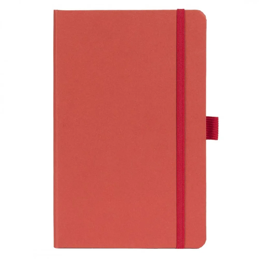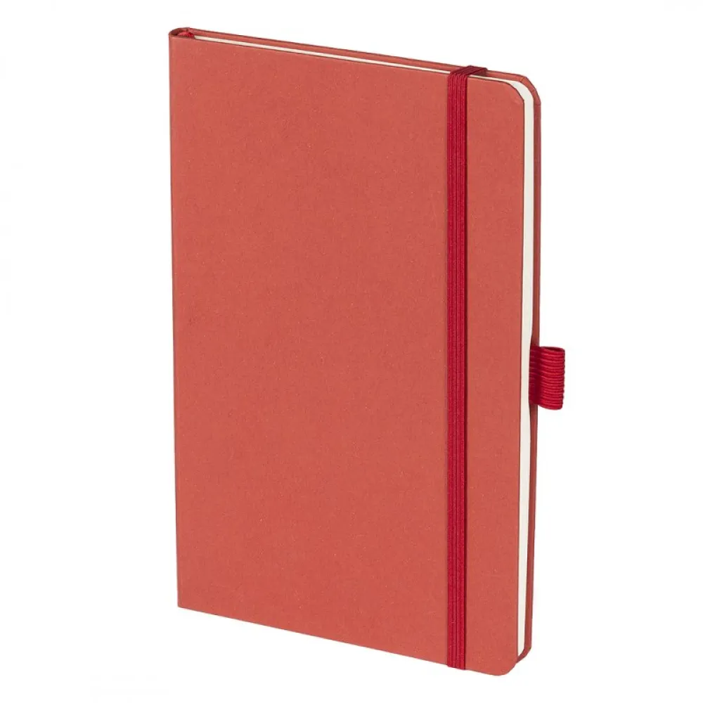 Notes sa zaobljenim ivicama, elastičnom trakom i držačem za olovku, korica je mešavina bio materijala i papira, knjižni blok je proizveden od recikliranog papira
