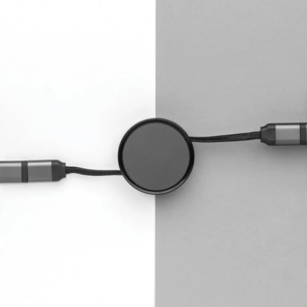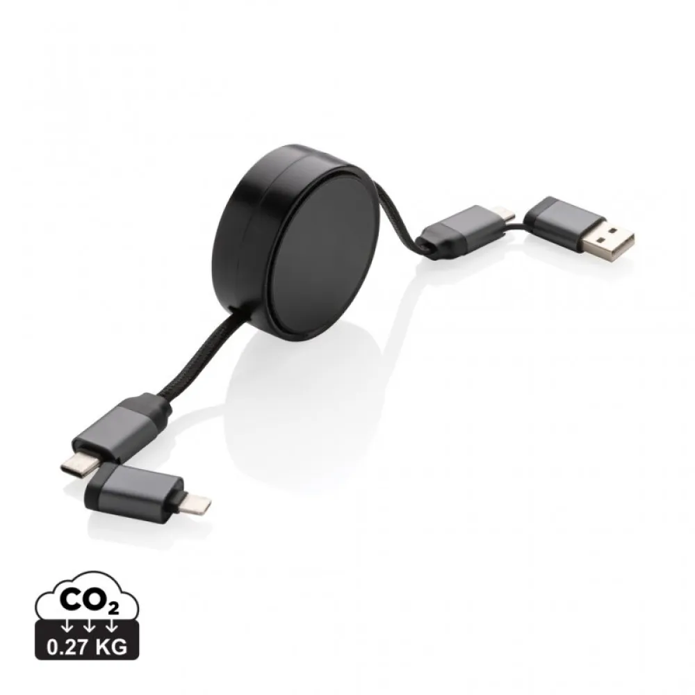 Retractable charging and data cable made with RCS (Recycled Claim Standard) certified recycled aluminium, recycled