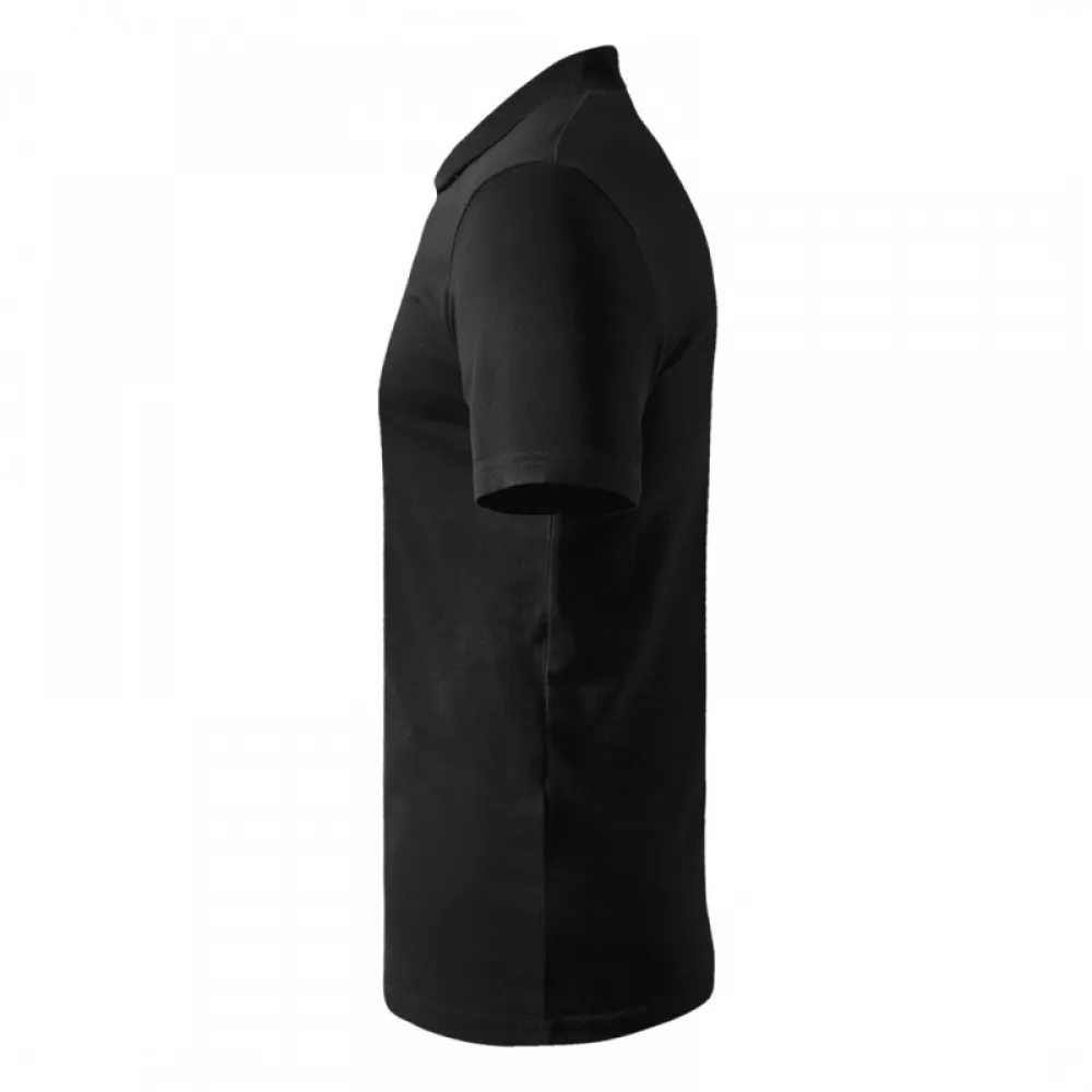 Polo majica, 180 g/m2, šivena sa strane, dupli štepovi na rukavima i dnu, tri dugmeta u boji majice, rezervno dugme, ojačana trakom duž vrata i dodatnim štepom duž ramena