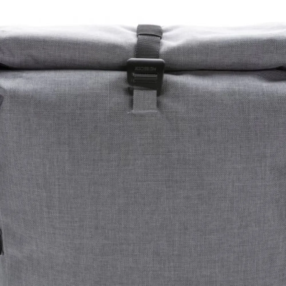 By rolling up the main compartment and securing it with the steel-reinforced combination lock, the backpack offers complete closure, which can also be utilised to lock the bag around a fixed object. Hidden pockets on the back and in the shoulder strap, featuring RFID protection, safeguard your cards.
