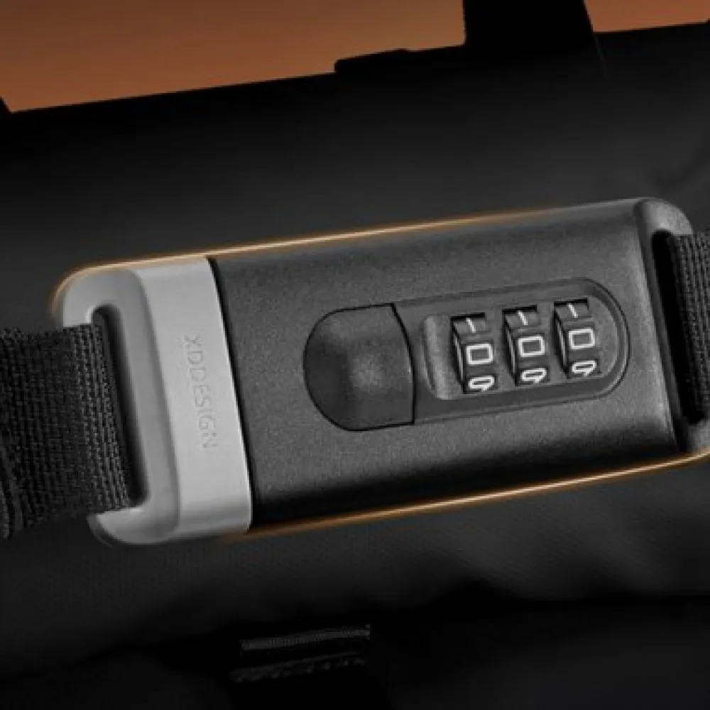 By rolling up the main compartment and securing it with the reinforced combination lock, the backpack offers complete closure, which can also be used to lock the bag around a fixed object.