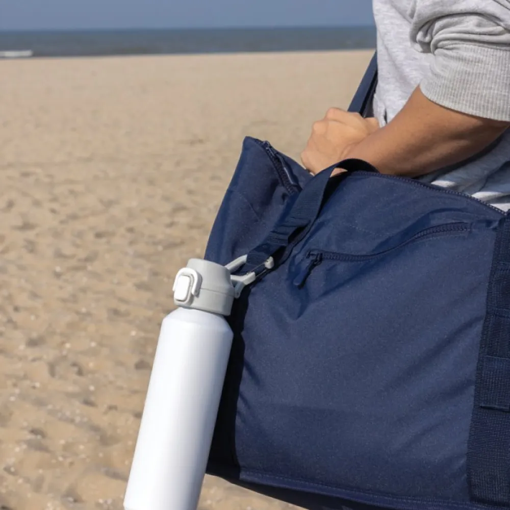 This waterbottle features single-wall construction with a unique screw-on and lockable leak-resistant lid. Single hand operation.