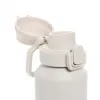 This waterbottle features single-wall construction with a unique screw-on and lockable leak-resistant lid. Single hand operation.