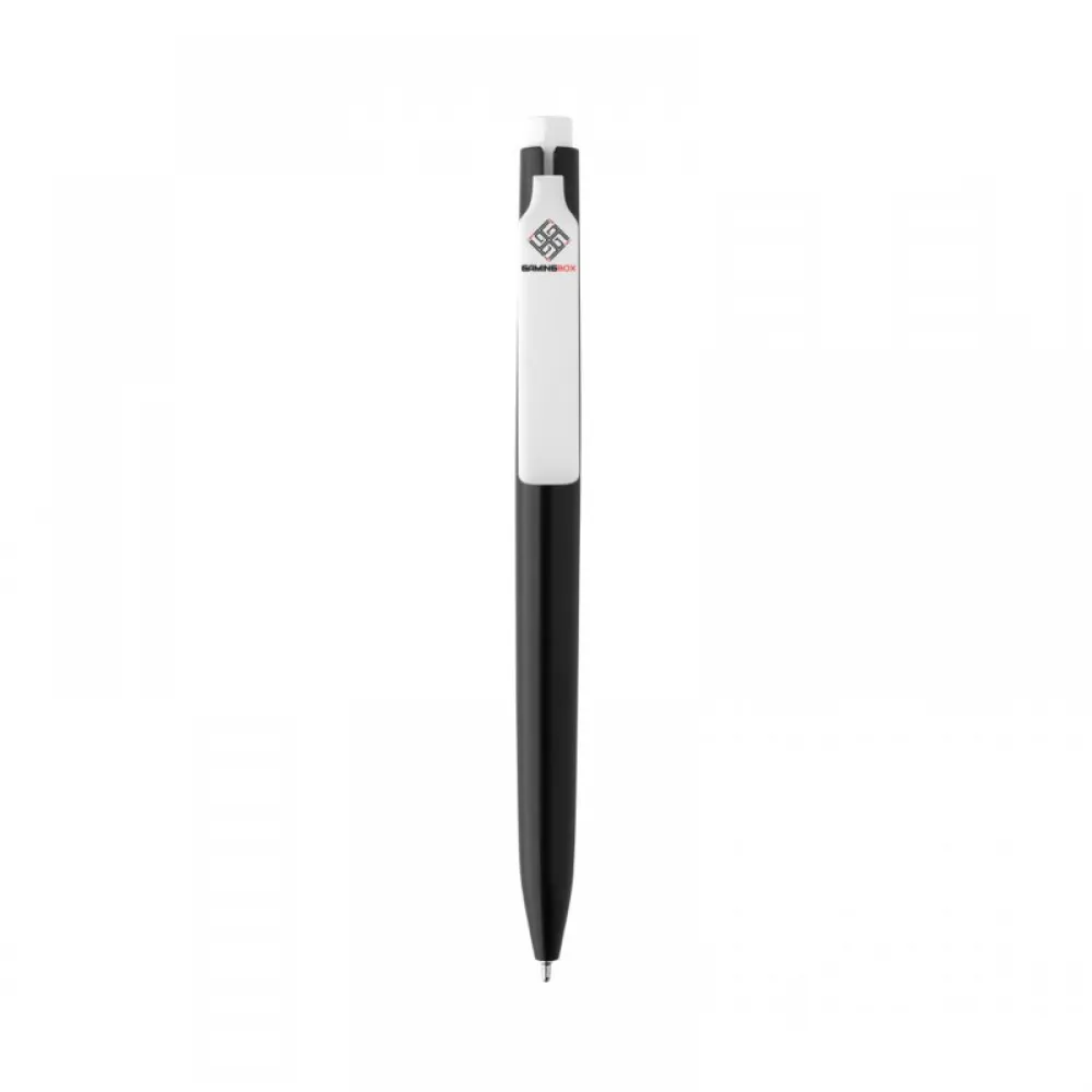 The ink is blue, and the pen is made with 55% recycled R-ABS, certified for sustainability.