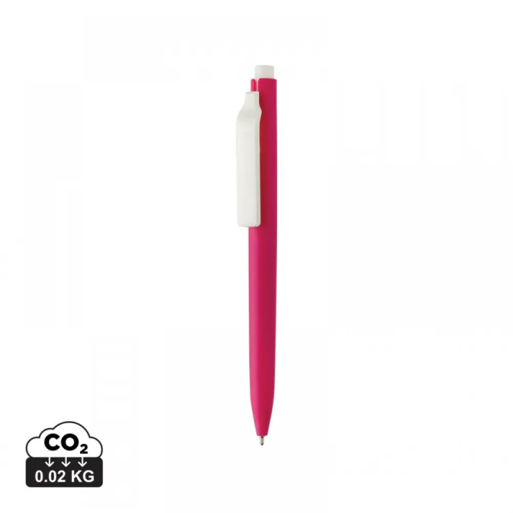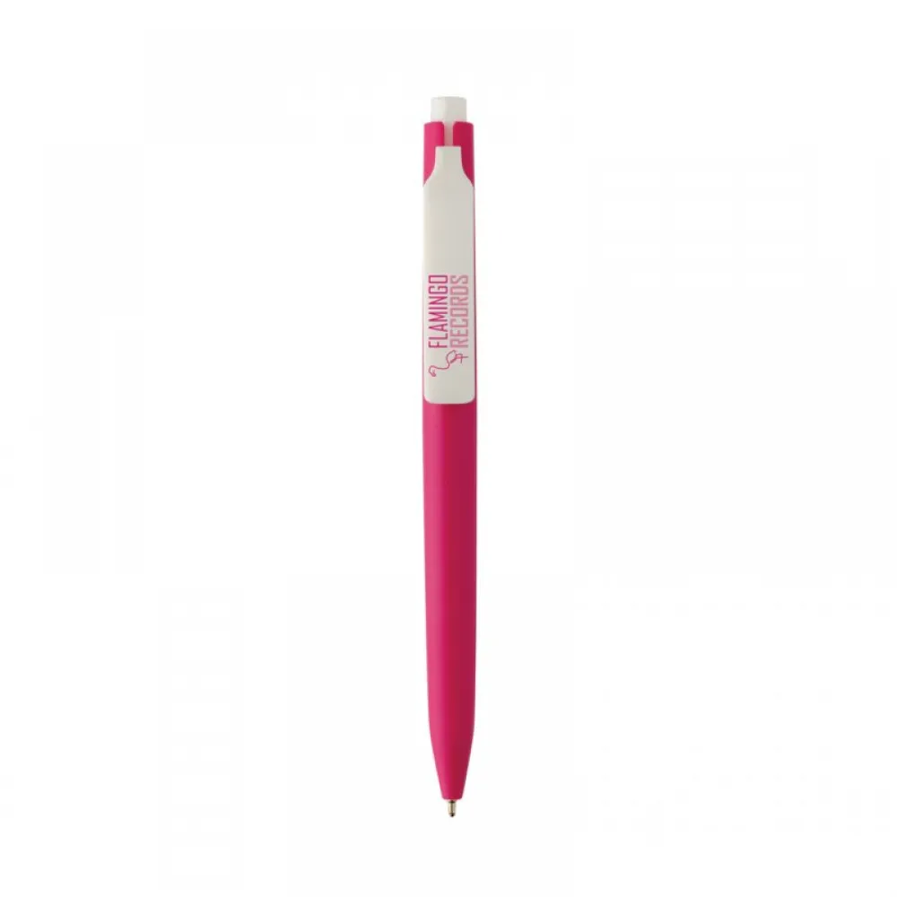 The ink is blue, and the pen is made with 55% recycled R-ABS, certified for sustainability.