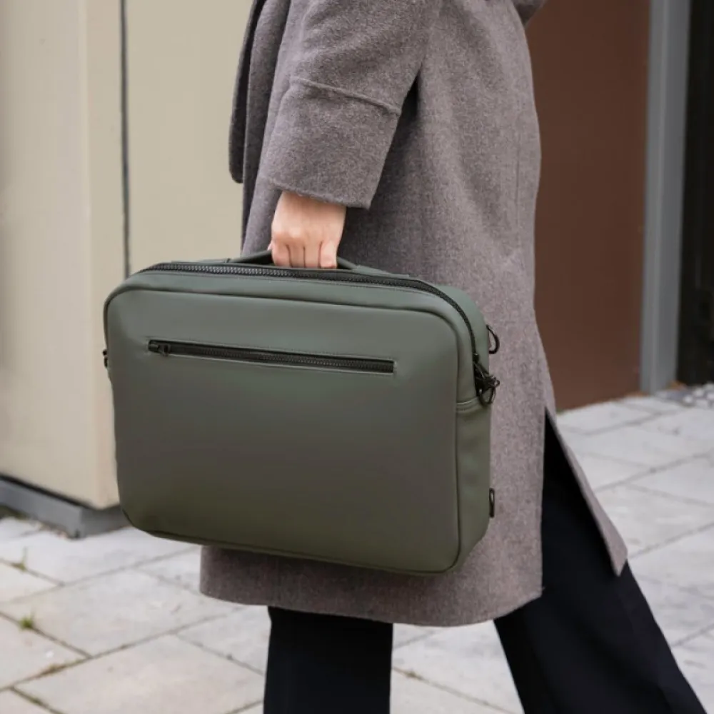 Meet your ultimate 2-in-1 companion: a convertible backpack and brief designed to support your everyday life. Use it as a sleek computer brief for business meetings and professional settings, wear it as a crossbody bag or effortlessly switch to a backpack for a hands-free efficient journey to your next destination. It offers adjustable shoulder straps, built-in handle, easy-access outside pocket, a smaller inside pocket and laptop compartment. Fits most laptops up to 15".