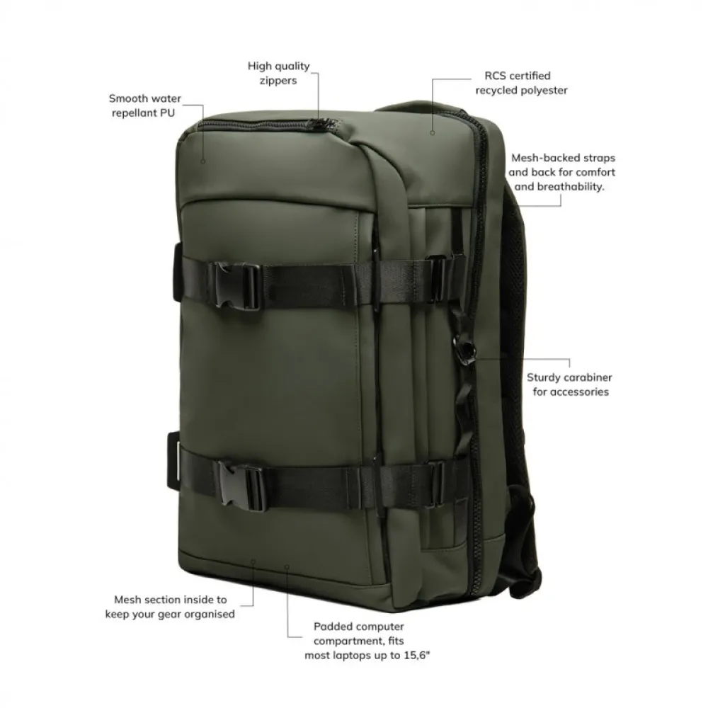 This is the ideal backpack for both daily commutes and weekend adventures. Certified by RCS (Recycled Claim Standard), RCS certification guarantees that the entire supply chain of recycled materials is certified.