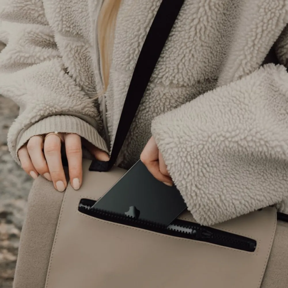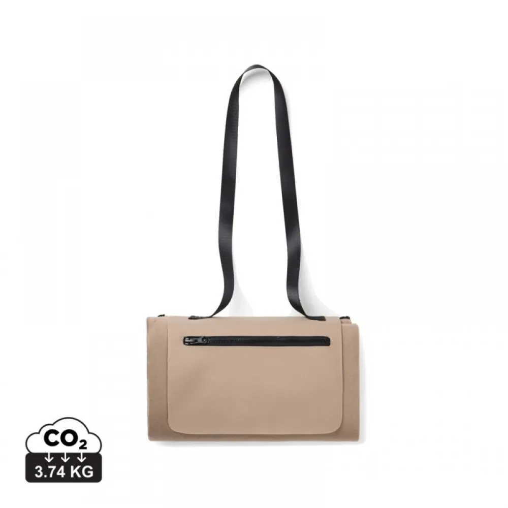 PEVA backing that protects against moisture and cold. Equipped with a long handle for easy and comfortable carrying and a practical front zip pocket for keys, phone or other essentials. Certified by RCS (Recycled Claim Standard), RCS certification guarantees that the entire supply chain of recycled materials is certified.