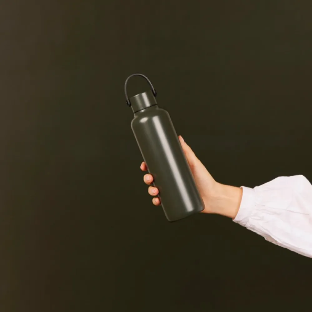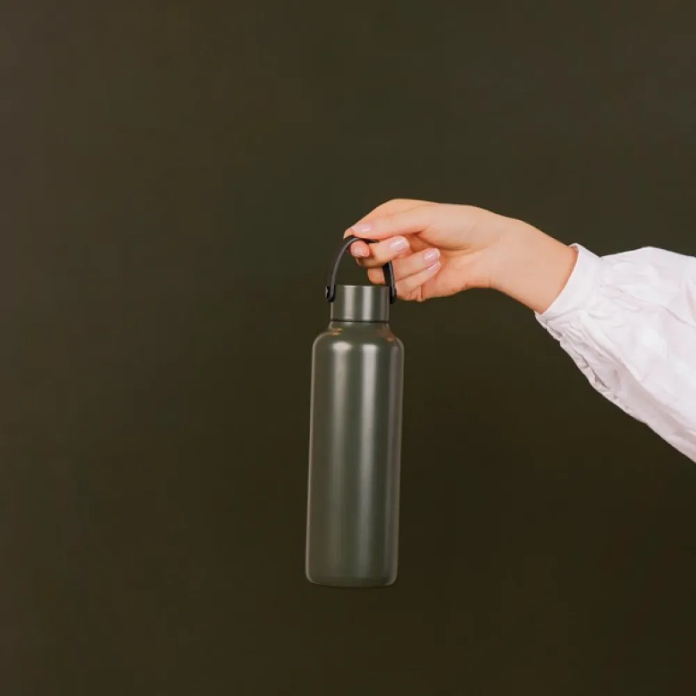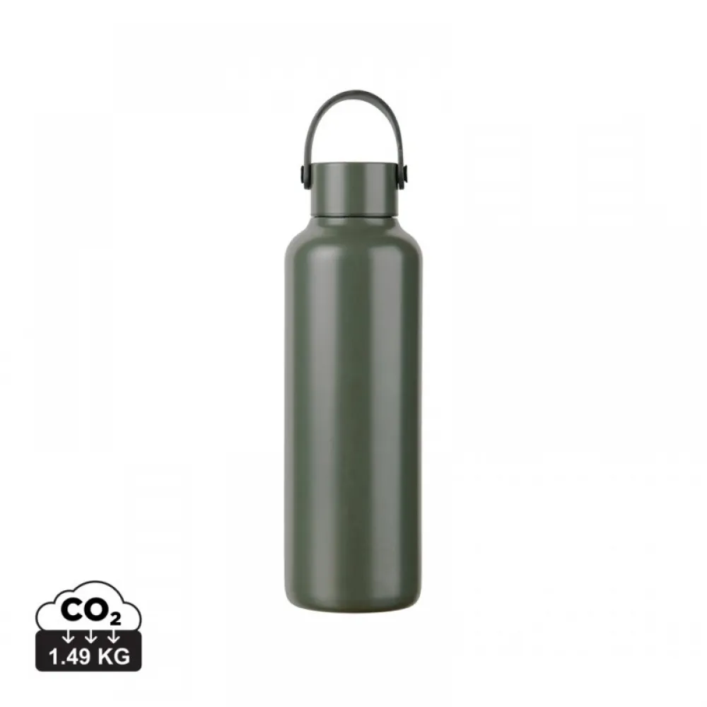 This double wall vacuum bottle, crafted from RCS certified recycled stainless steel, offers both performance and style.