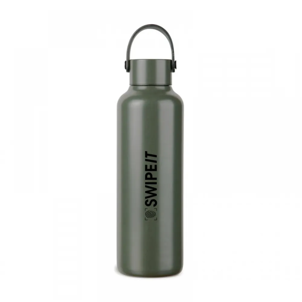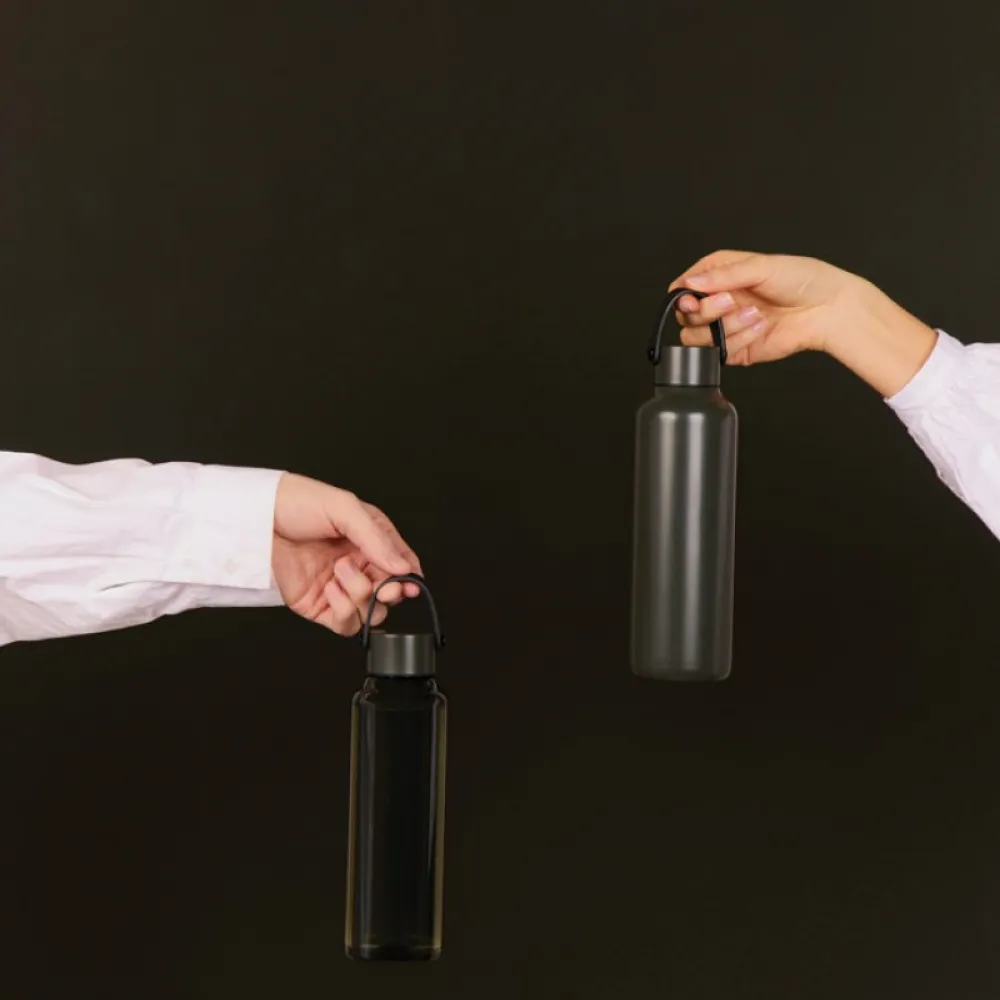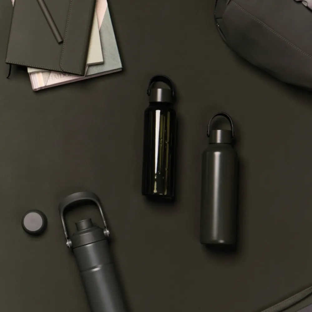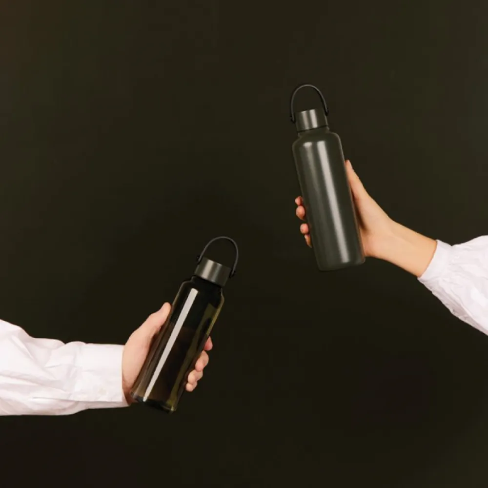 This double wall vacuum bottle, crafted from RCS certified recycled stainless steel, offers both performance and style.