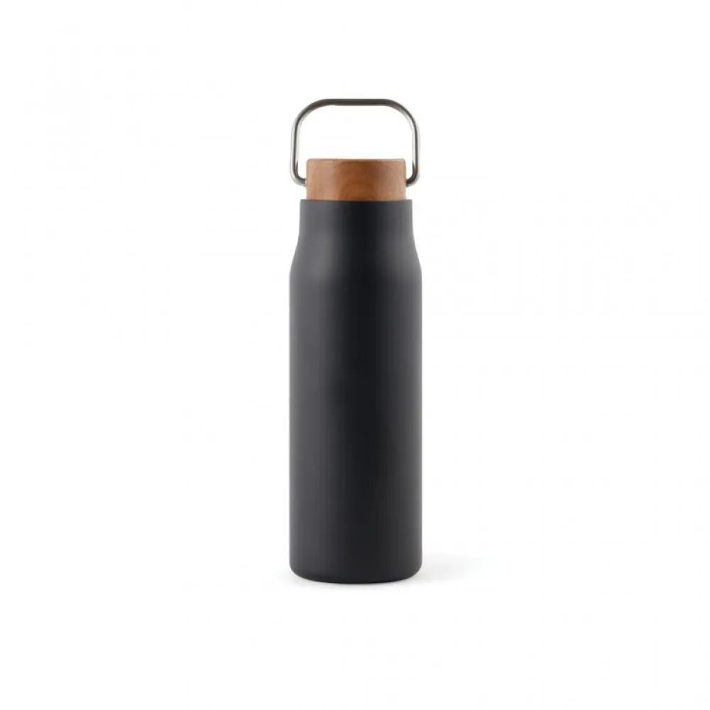 The bottle has a lid of acacia wood with a metal loop, which makes the bottle easy to carry with you when you're on the go. Acacia wood is an organic material where variations in shade and color are natural characteristics.