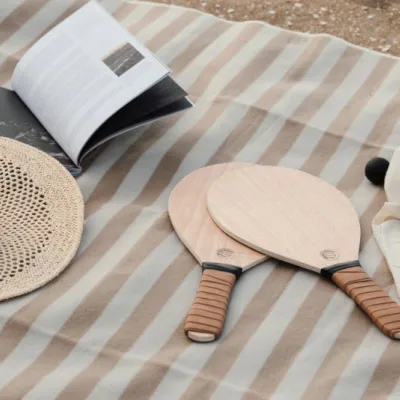 An elegant beach tennis set, made of poplar wood with