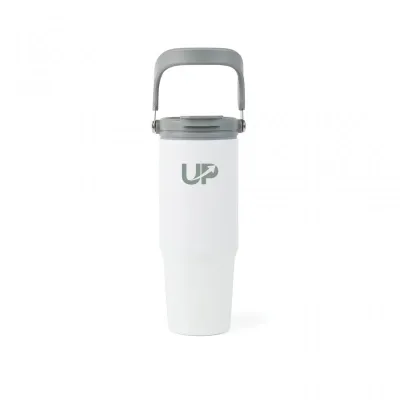 This recycled stainless steel vacuum bottle features a modern design that combines functionality with style. With a generous capacity of 880