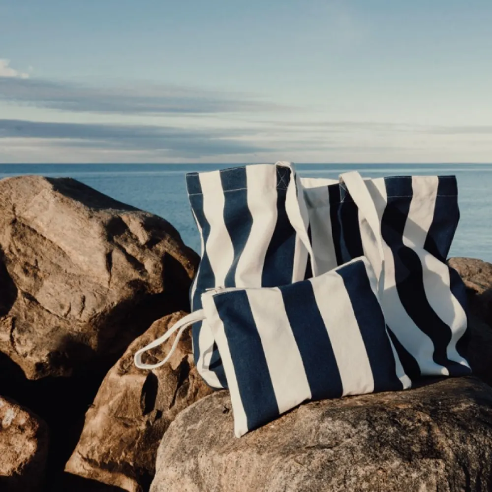 Designed with a classic two-coloured striped pattern in 390 GSM canvas. Certified by GRS (Global Recycled Standard), GRS certification guarantees that the entire supply chain of the recycled materials is certified.