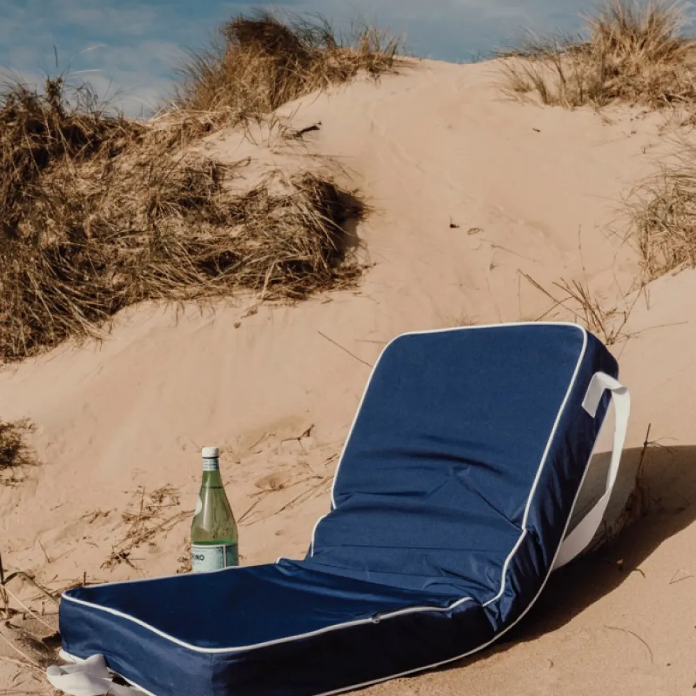 Find your perfect position with our portable beach chair. With six adjustable reclining levels, you can choose whether to sit upright with a book, lean back to watch the waves, or stretch out under the sun. Lightweighted and foldable, offering both shoulder strap and carry handles for easy carrying. For personal items you can choose to place them either in big backside pocket or a smaller, hidden pocket with zipper. Comfortable, practical and made for days to relax. Certified by GRS (Global Recycled Standard), GRS certification guarantees that the entire supply chain of the recycled materials is certified.