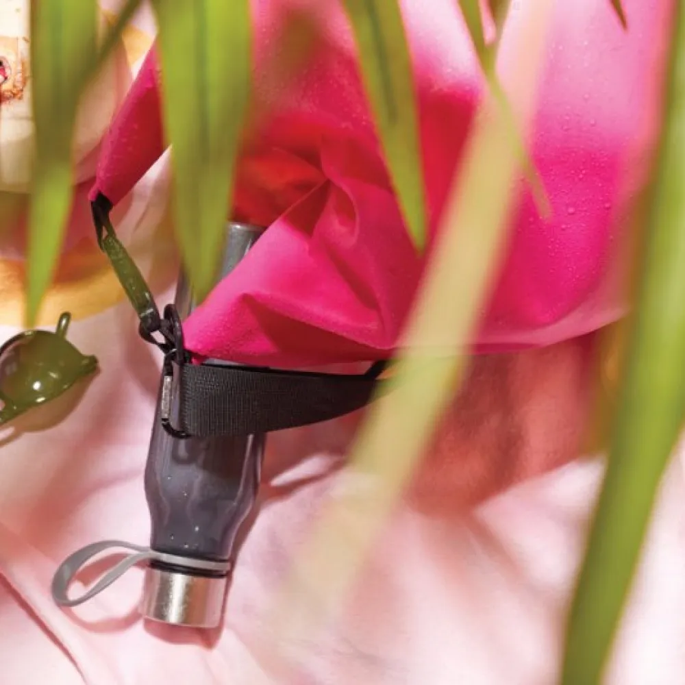 The loop on the lid makes it easy to hang on the exercise machine and the ideal shape allows it to fit in most cup holders.