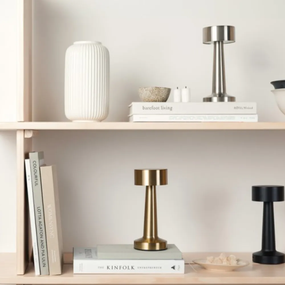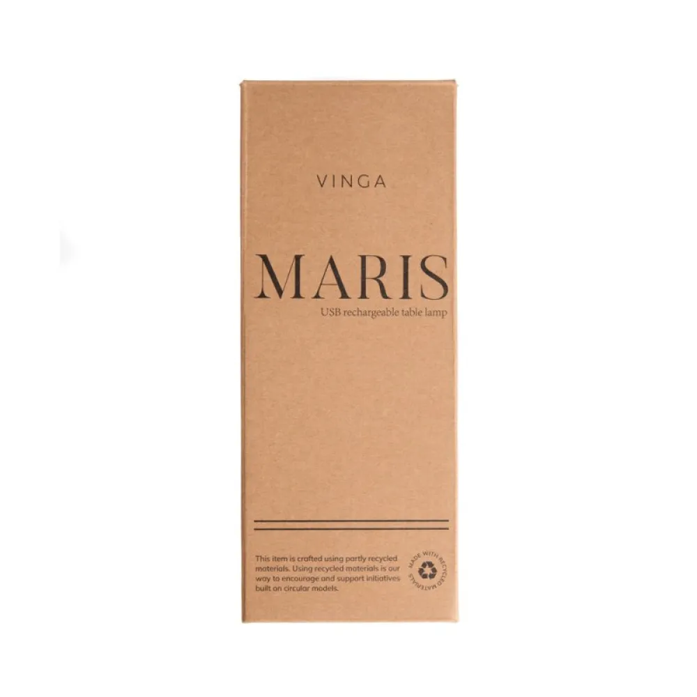 Maris RCS table lamp. Crafted from durable metal and recycled ABS, this lamp offers up to 8 hours of illumination. Easily switch between warm light, white light, and warm white light with the touch switch, and adjust brightness with a long press. it's convenient and easy to recharge. Rechargeable via USB-C, cable included. Certified by RCS (Recycled Claim Standard), RCS certification guarantees that the entire supply chain of recycled materials is certified.