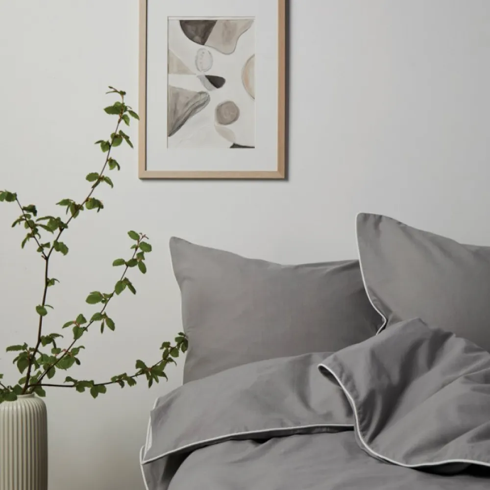 This elegant set features a solid colour design with piping detail in contrasting colour along the edges, adding a touch of sophistication to your bedding ensemble. Complete with two pillowcases (50x60 cm) and two duvet covers (150x210 cm), it ensures a coordinated and chic look for your bed.