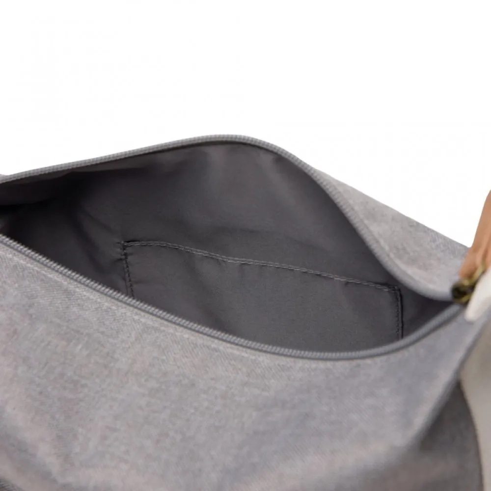 The top handle, secured with a snap button, doubles as a convenient hanging loop. A smooth zipper at the top provides easy access to the main compartment, while the open inner pocket keeps your essentials organised. RCS (Recycled Claim Standard), RCS certification guarantees that the entire supply chain of recycled materials is certified.