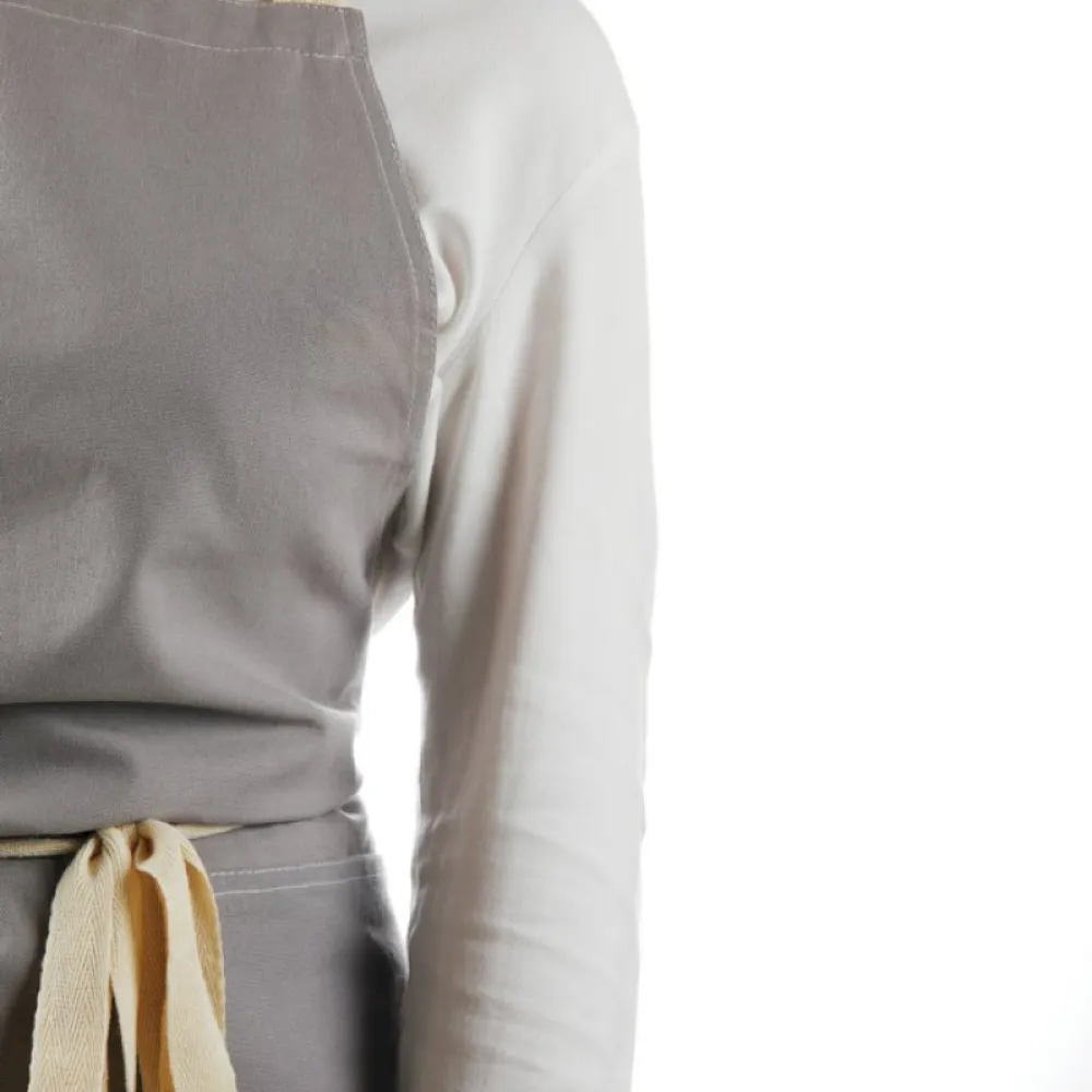 Apron made from 70% certified recycled cotton from suppliers' cotton waste. Fibres that are usually considered unusable have, with the appropriate manufacturing process, achieved the desired properties.