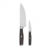 The beautiful pakkawood handle provides a comfortable and secure grip, while the superb balance in the blade ensures ease of use. Size chef's knife: 33 cm (blade 21 cm). Size paring knife: 19.5 cm (blade 8.5 cm). Hand wash only to ensure a long life.