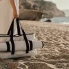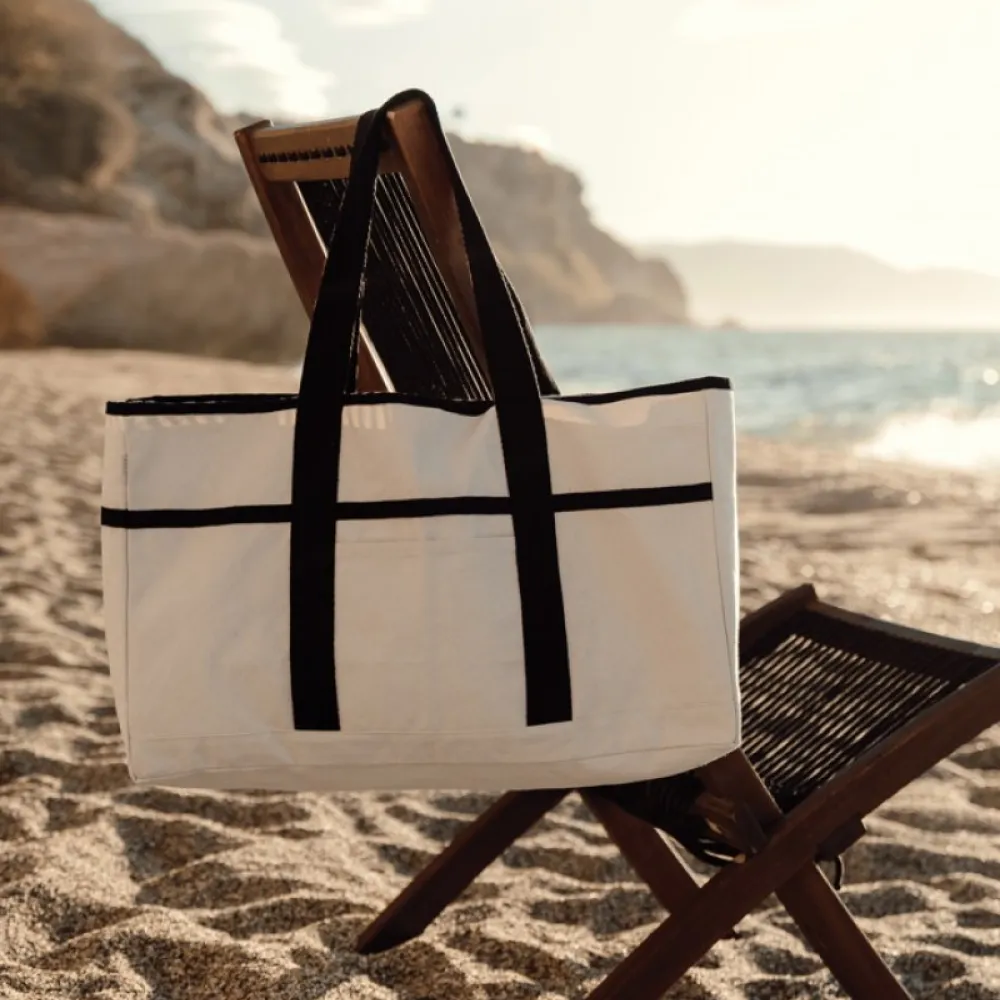 Hit the beach in style with this generous beach bag. Its spacious design, complemented by a towel holder at one side, makes it perfect for beach outings or picnics.