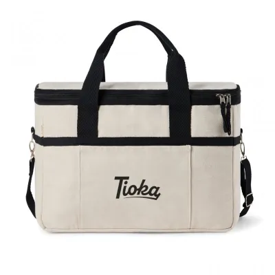 Discover our spacious cooler basket, designed to keep your favorites chilled for longer durations. Featuring an adjustable shoulder strap and robust handles for versatile carrying options. Crafted from 500 gsm recycled canvas.
