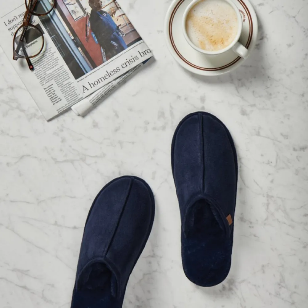 Experience the ultimate in comfort with our slip-in slippers, featuring a plush and cosy interior and a sleek faux suede exterior.