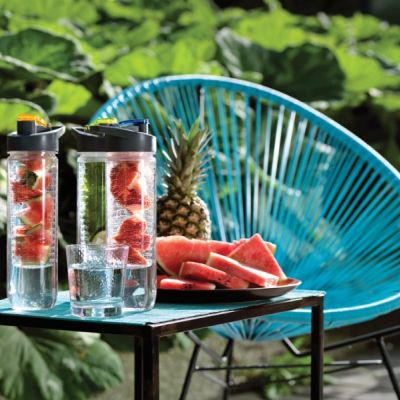 Tritan bottle with fruit infuser compartment. Infuse your water with a load of vitamins and flavour by adding fresh fruits into the infuser compartment.