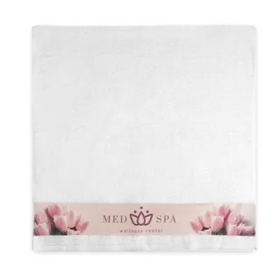 Peškir, 380 g/m2, bordura za brendiranje širine 10 cm i zakačka od pamučne trake u boji peškira