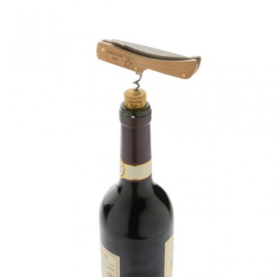Foldable knife made with FSC 100% beech wood and high quality stainless steel (420) blade. On the reverse, there is a strong bottle opener. Rockwell hardness 42-52.